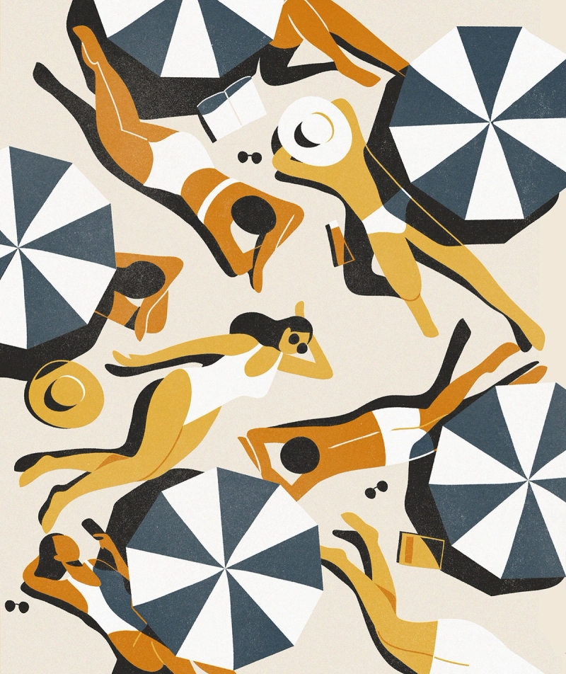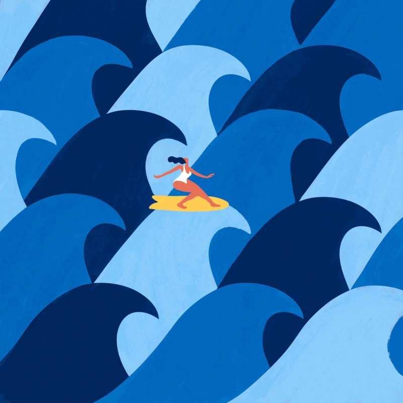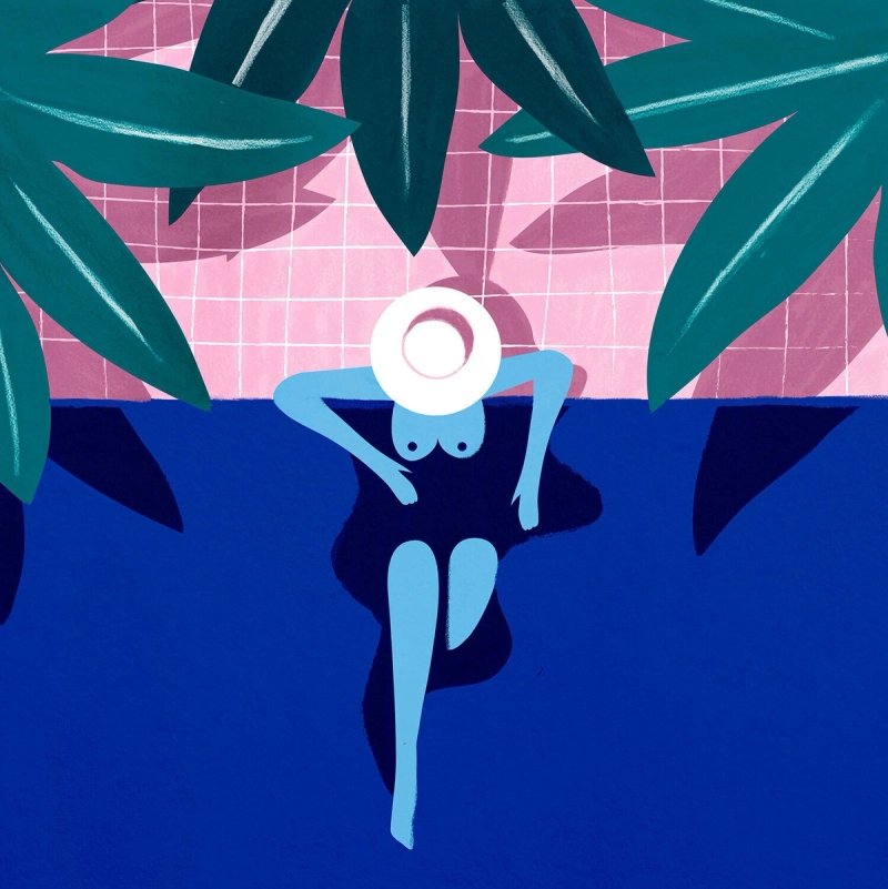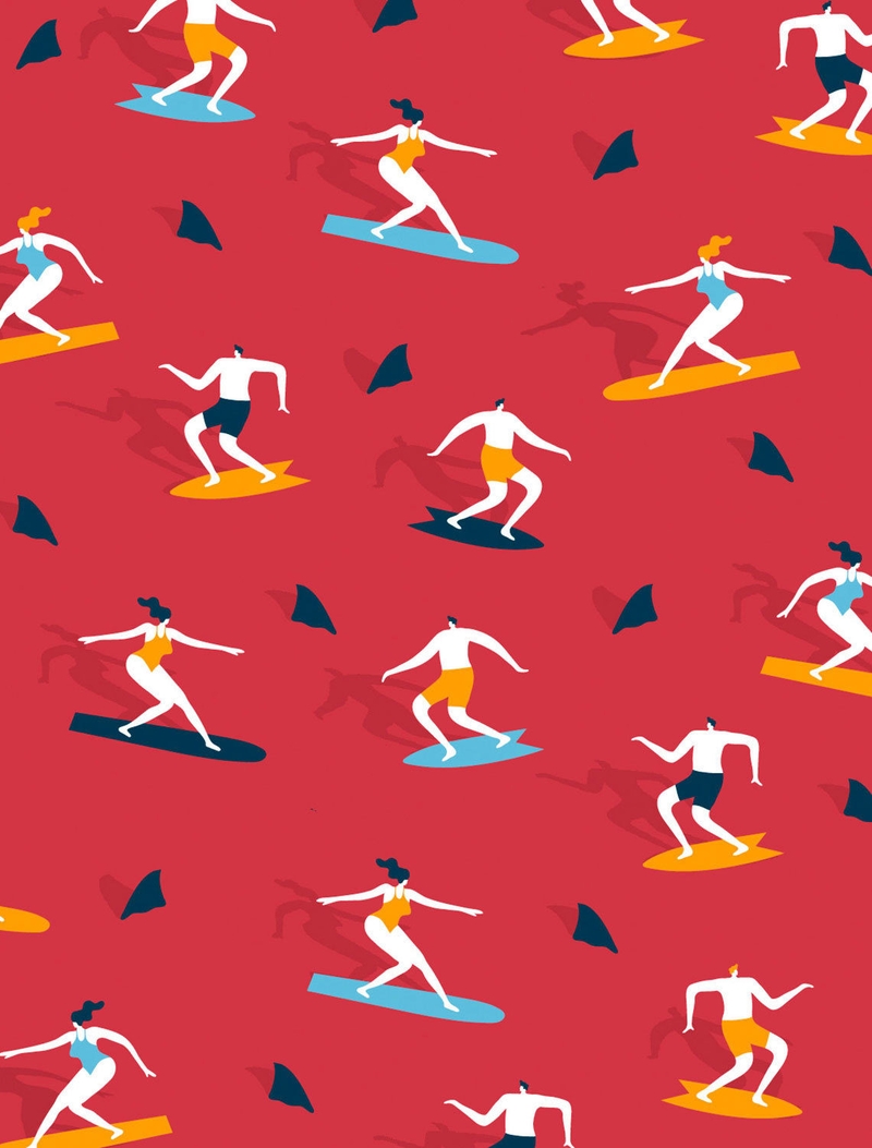 Whilst versatile in his mediums and process, he never strays far from a winning formula and themes of sun, the sea and surfing are an ever present in his imagery. He can either create clean digital illustrations or 'digital paintings' - over the years Quentin has developed techniques and textures allowing him to create digital images that look like gouache or acrylic paintings. Whatever the approach, his minimalist characters and beautifully composed patterns, capture a world we'd all like to live in.