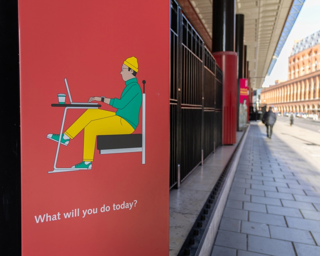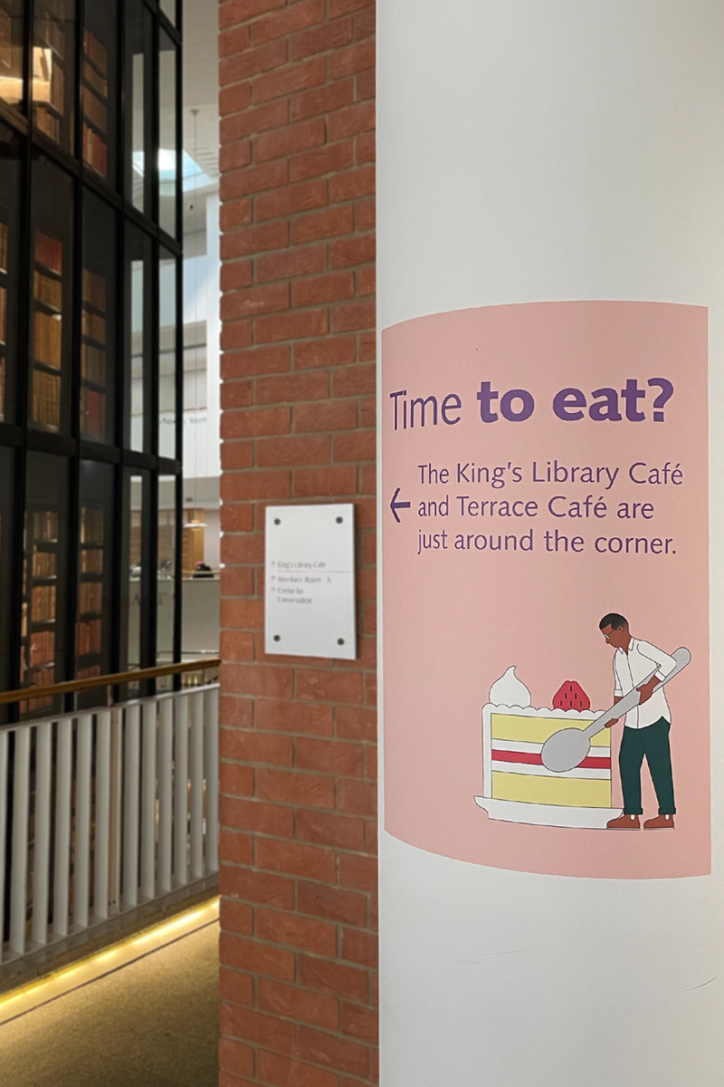 When the library contacted us last year, they were looking for a full suite of characterful illustrations to adorn their new way-finder signage, both inside and outside of the iconic site, as part of a colourful brand update.