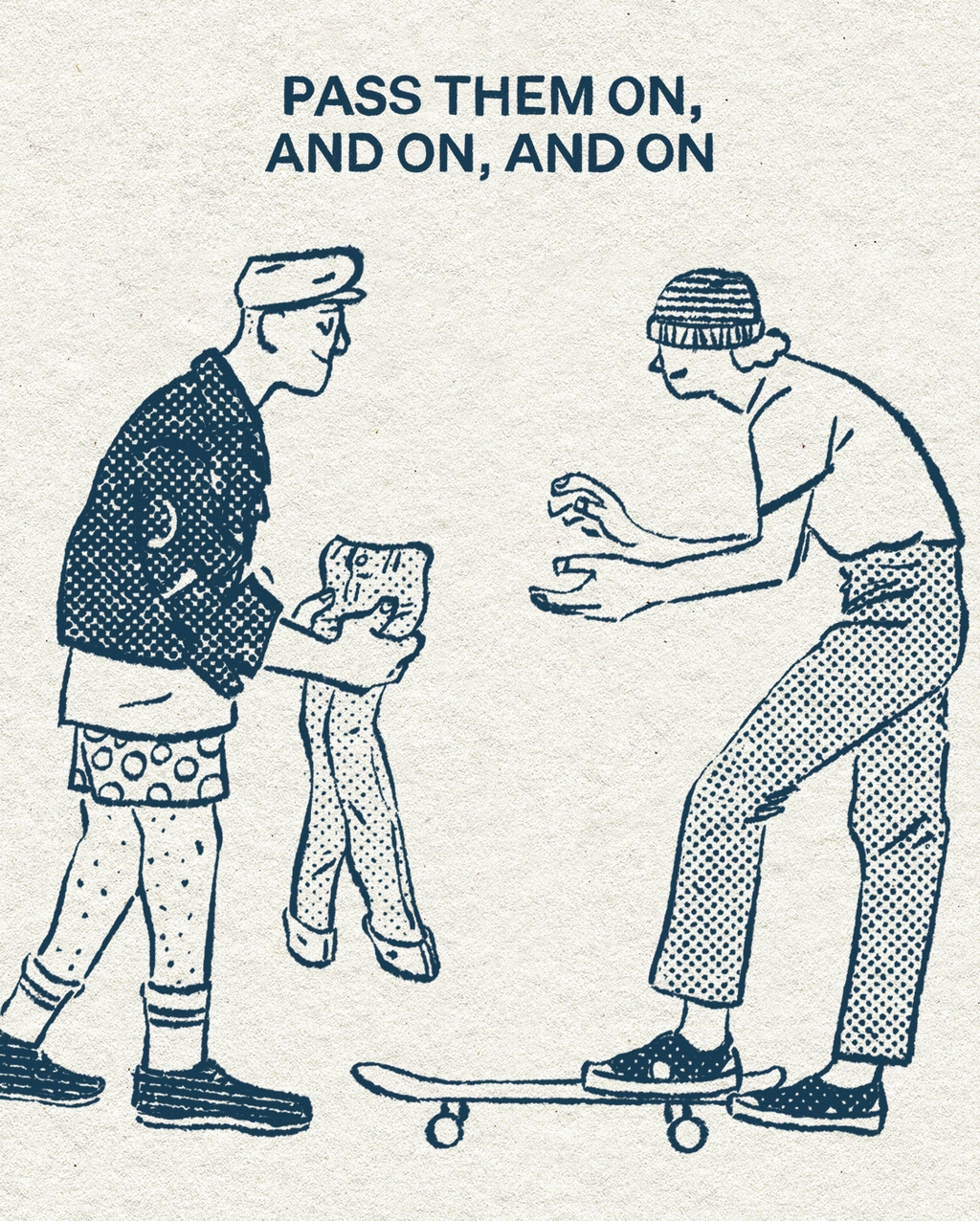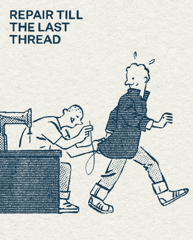 Each illustration brilliantly conveys a set of principles and a guide to consume fashion sustainably, and Luis Mendo's organic line work and memorable characters bring a lighthearted touch to a serious subject. And who could argue with one of the best dressed illustrators around? Bravo Mr Mendo!