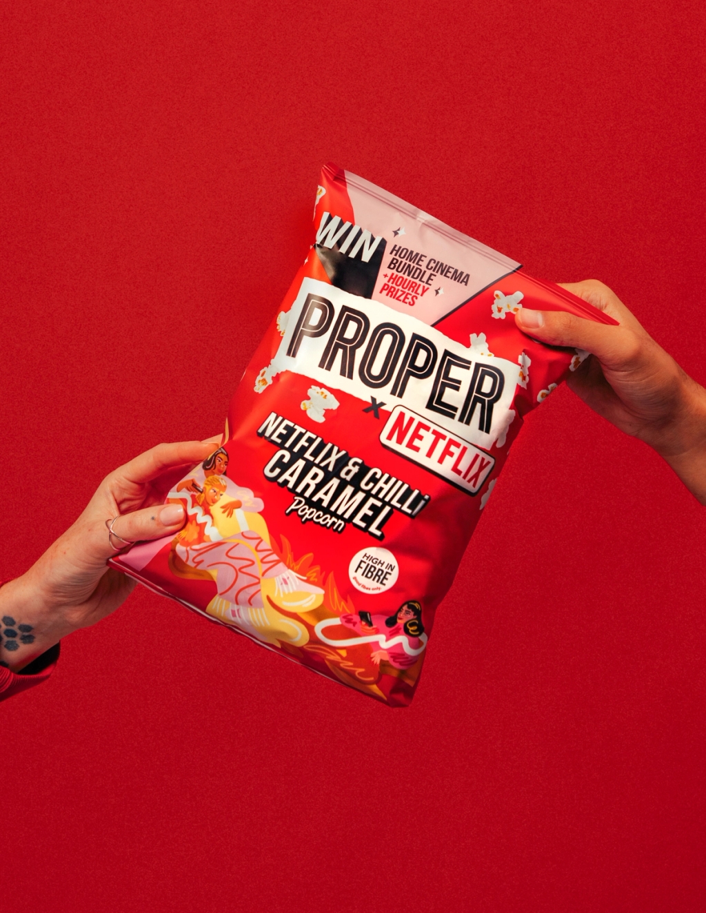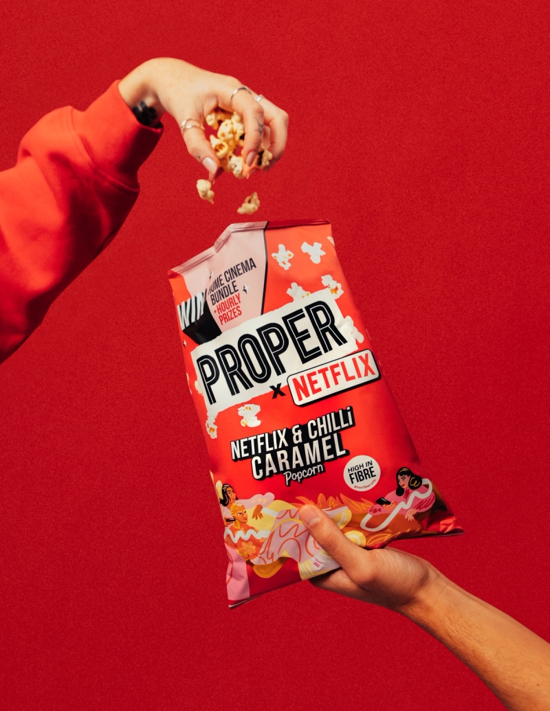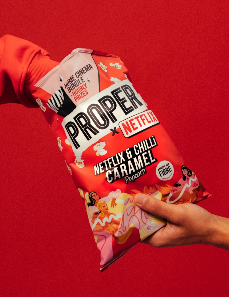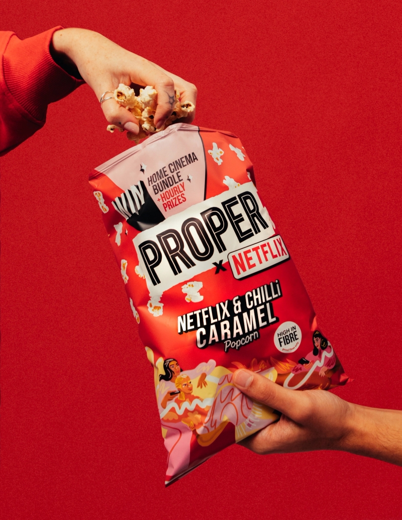 The artwork for this flavourful take on pop culture was created in collaboration with the Proper Corn team, whose clever play on the phrase “Netflix and Chill” resulted in this spicy, bold-flavoured snack.